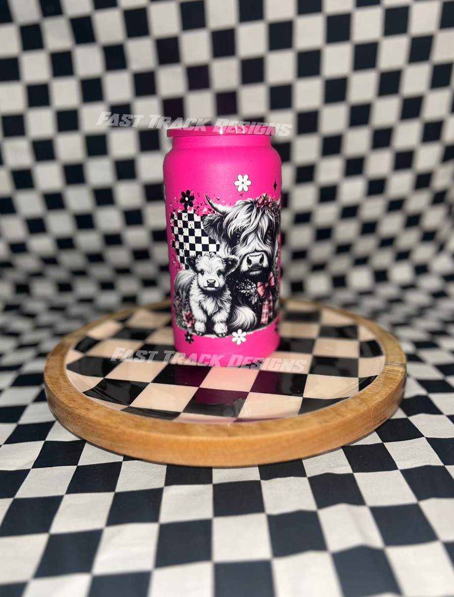 Highland cows UV DTF Print on a stainless steel 16 Oz cup.
